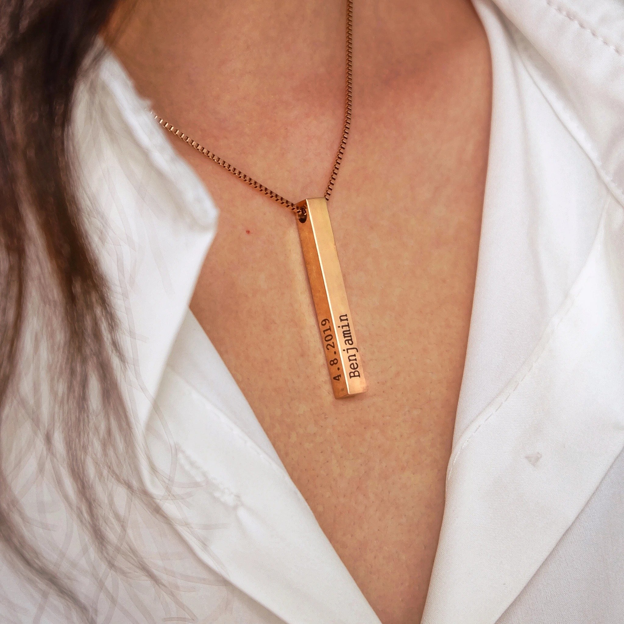 Engraved 4-sided Bar Name Necklace