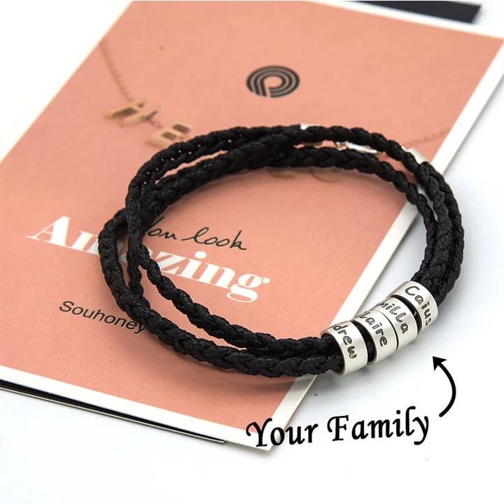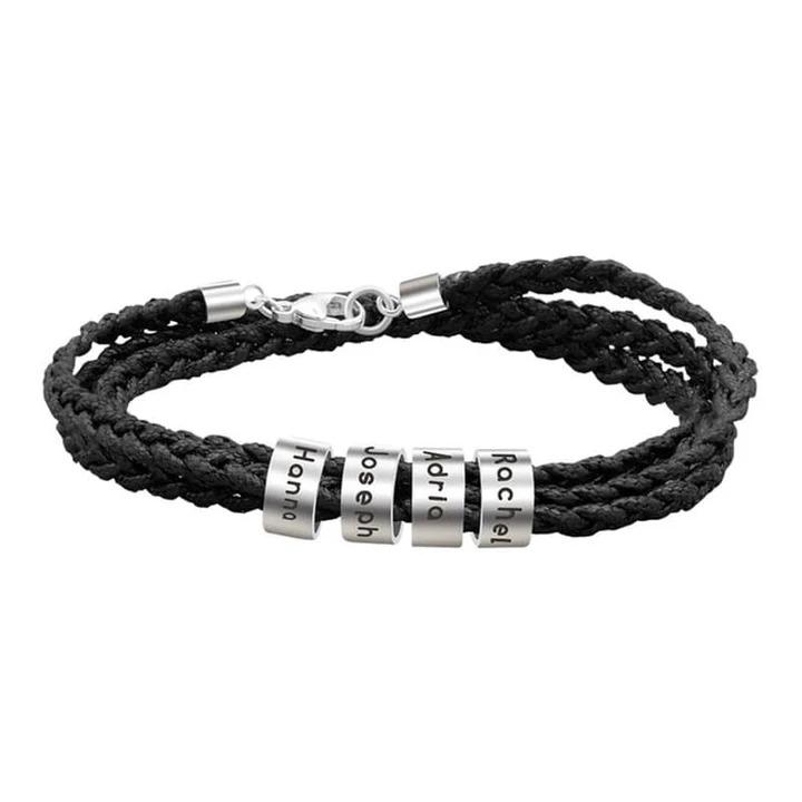 Our Men’s ID Bracelet with Small Custom Beads in Sterling Silver 925 with Any Name inscription is just right for celebrating love, friendship, fathers day and family. With a supple band of wax cotton braid in black , this custom bracelet is personalized with up to Eight beads, each with an inscription of its own. A sturdy clasp ensures that the fit is comfortable and secure.