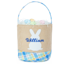 - Personalized Easter Basket: Make this Easter extra special with a custom basket featuring a cute bunny design and your child's name embroidered on the front. Available in pink and blue color options.
